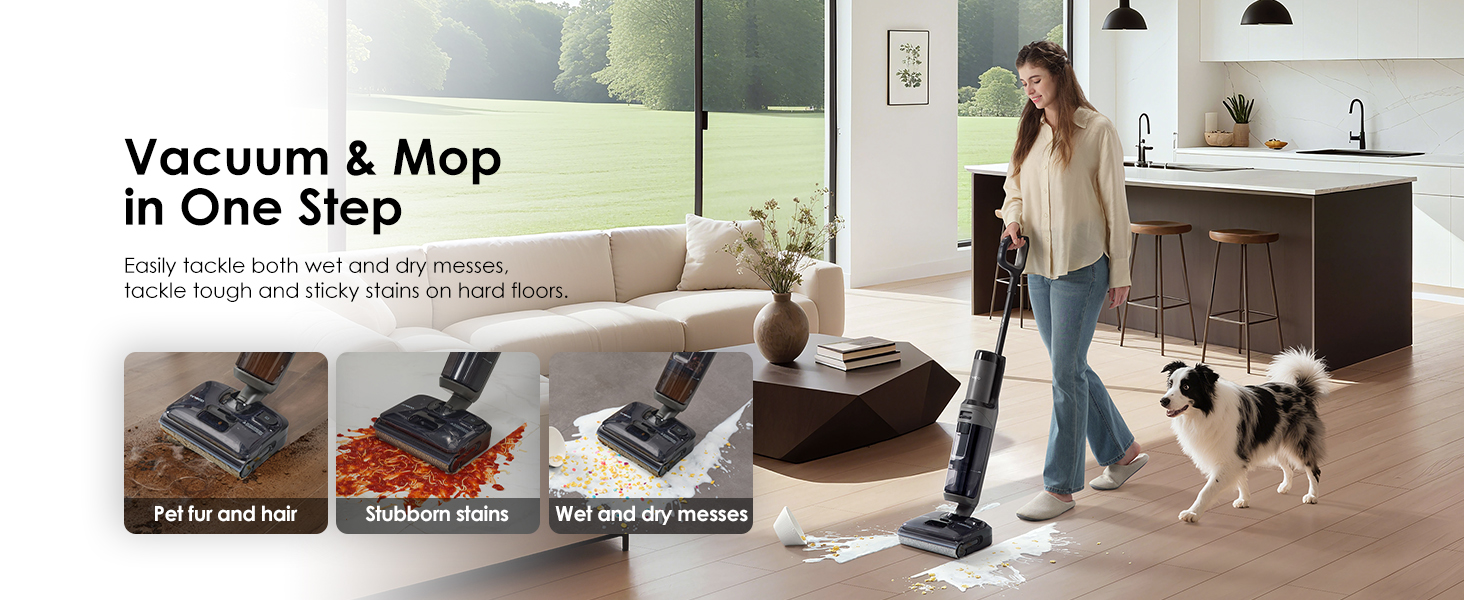 Effortlessly lifts and removes dirt, debris, and hair from your floors (including hardwood floors), while washing and vacuuming simultaneously—acting as a versatile wet-dry vacuum and mop vacuum—keeping your floors clean and dry at all times, leaving your home refreshed and spotless. Its performance outshines basic corded vacuums and even rugged wet-dry vac models, making it suitable for heavy-duty messes