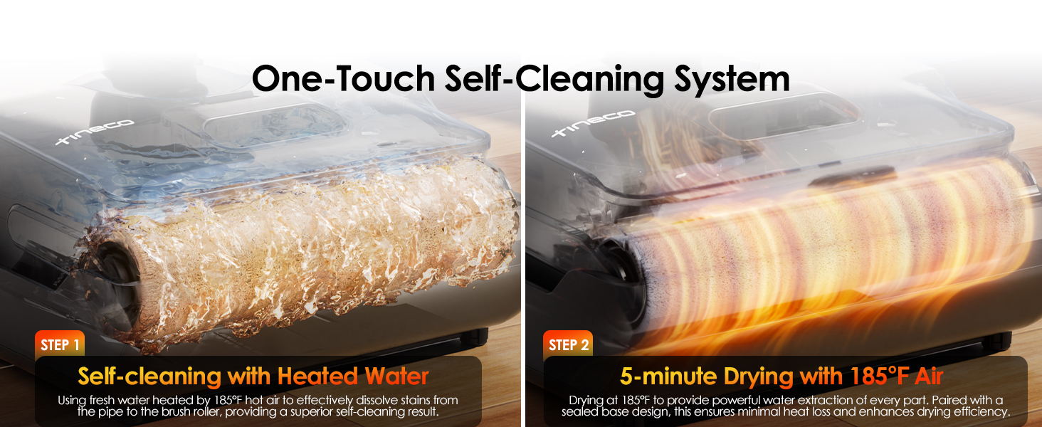 With one-touch hot water self-cleaning (a key hands-free self-cleaning function), the roller brush, suction inlet, and cover are thoroughly cleaned, followed by a 5-minute high-temperature quick dry, restoring the roller brush to a clean and dry state. It rivals the convenience of the Tineco Floor One S7 Pro and surpasses the older Floor One S7 combo, with no need for a separate blower port for maintenance.