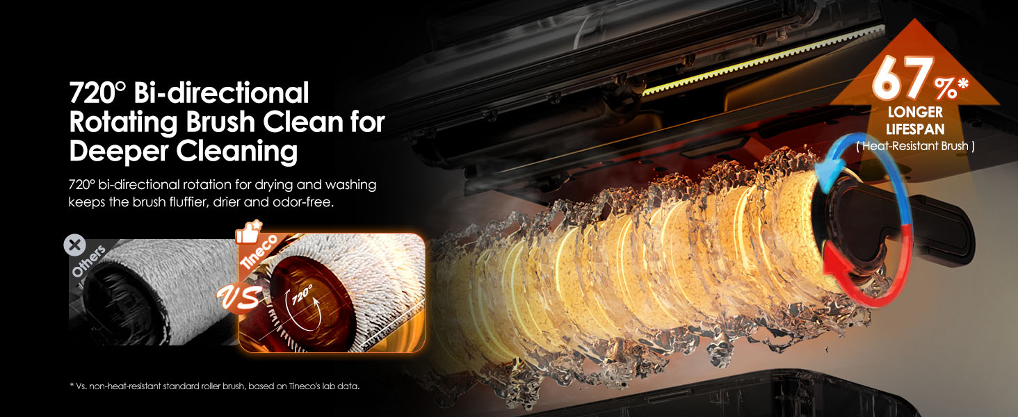 - MHCBS Technology – (Maintain Hygiene Clean Brush System) technology in Tineco vacuums is a continuous, freshwater cleaning system. It ensures the floor is washed with a clean brush and fresh water at high RPM, while simultaneously recycling dirty water to keep floors spotless and prevent streaks.