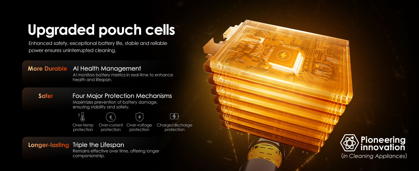 Triple the Battery Lifespan, Stable and reliable power ensures uninterrupted cleaning.